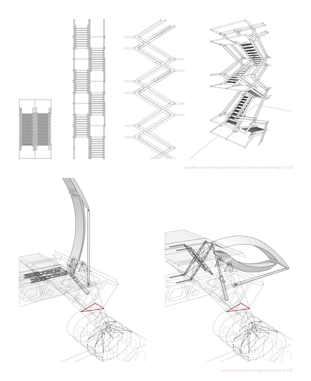 die Wassertreppe lässt sich einfahren und reagiert dynamisch auf die Bewegungen des Wassers -